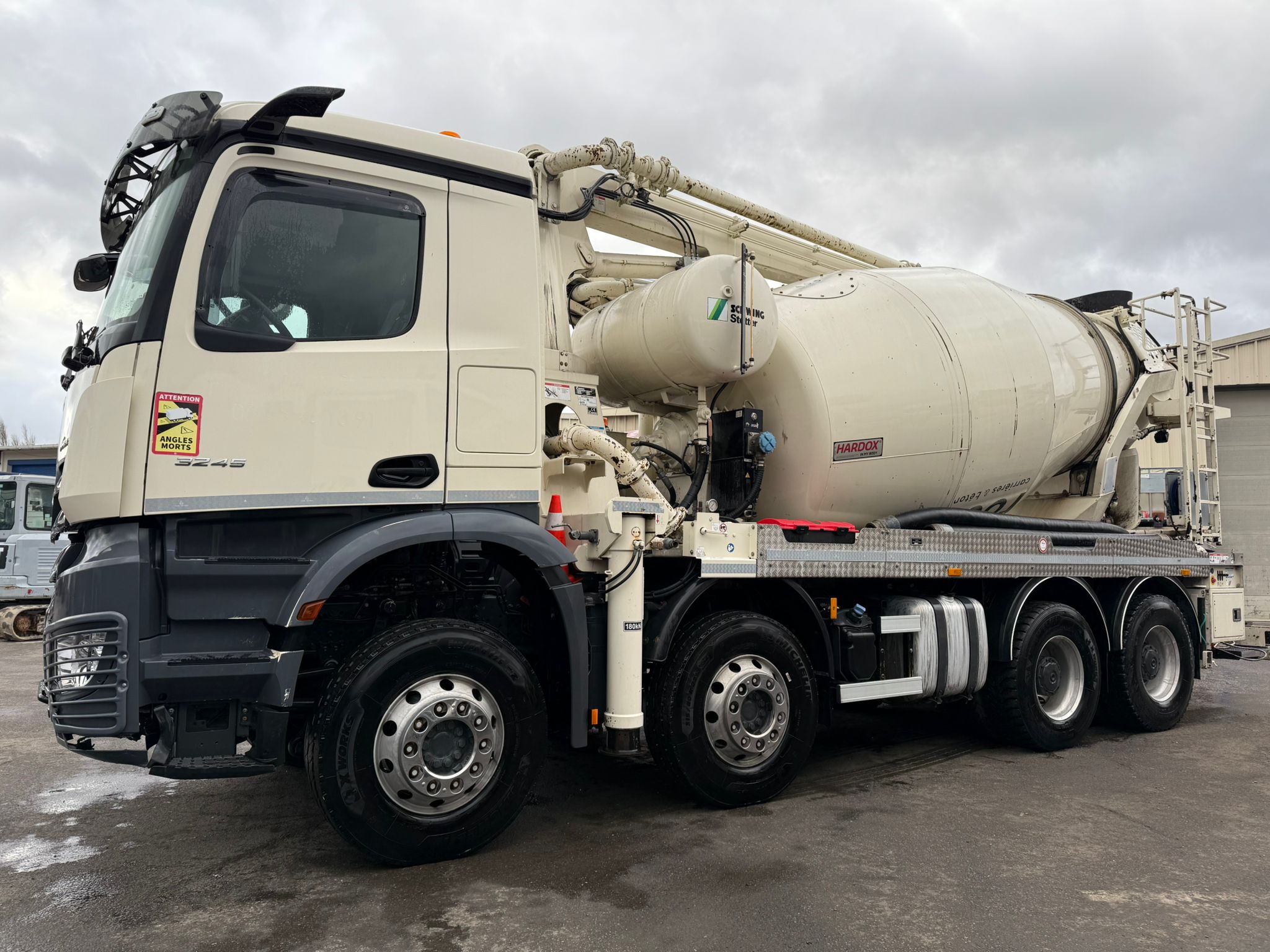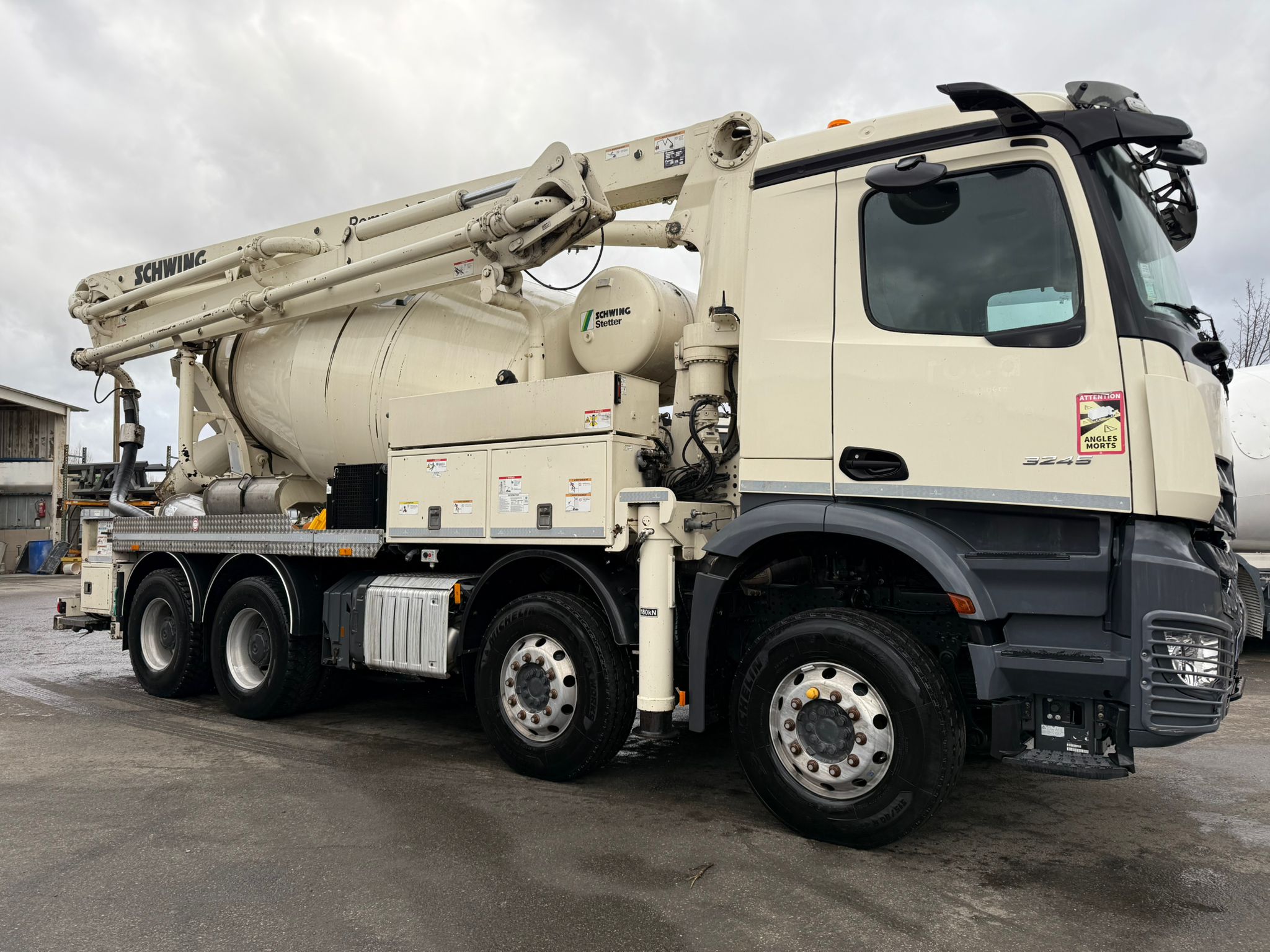Camion béton mixo-pompe Mercedes-Benz Arocs 3245 PMC 24/11/2021 Boîte auto 57535 km Rétroviseurs dernière génération Cuve Schwing équipée d'une pompe à béton 24m à piston Très bien chaussé En très...